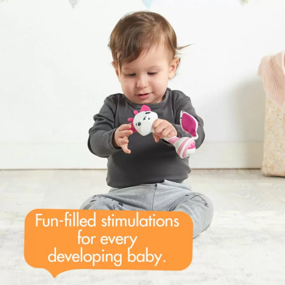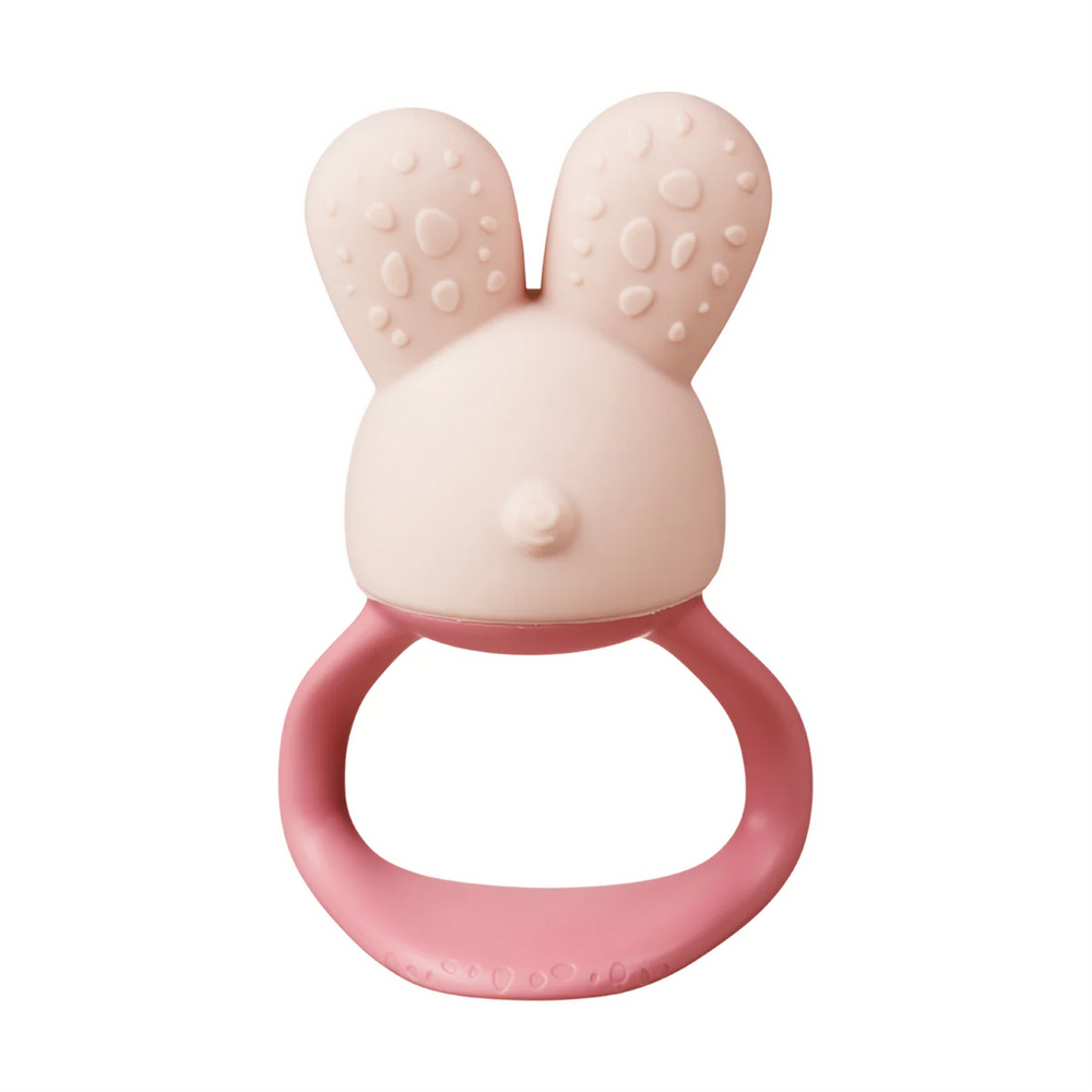 Introducing our chill + fill sensory teether. Offering a unique refillable teether to provide refreshing relief to teething tots from 3 months. Keep teether chilled in the fridge, then simply add an ice cube and cold water for cooling relief to inflamed, achy baby gums. Soft, food grade silicone bunny head and ears reach all areas of mouth safely.
