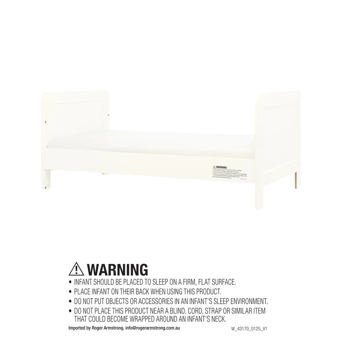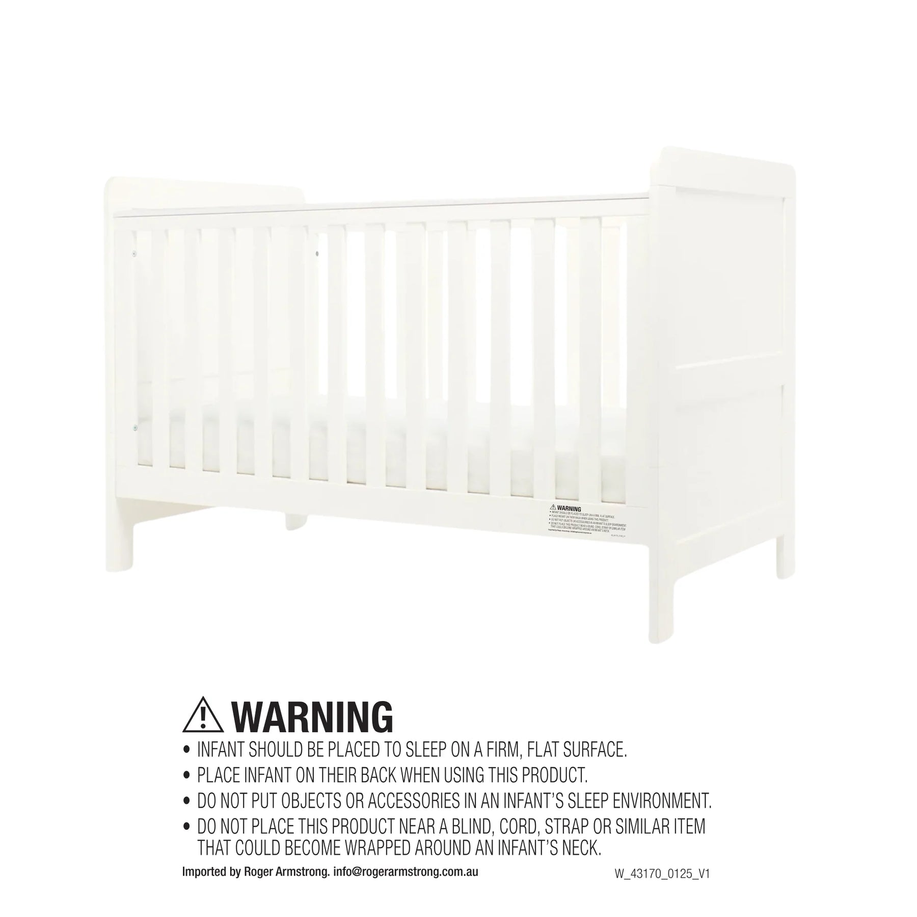 Designed to see you from birth until around 4 years old, the Hampden Cotbed converts easily from a cot to a toddler bed. With 2 easily adjustable cot base heights, you can pop baby down for a nap without disturbing them, and as they get older and become more mobile, simply lower the height to keep them safely inside their cot. Fixed wooden side panels ensure your little one is kept secure. And because our cotbeds have been tested to the strictest Australian safety standards, you can sleep easier knowing your little one is safe.