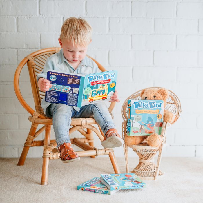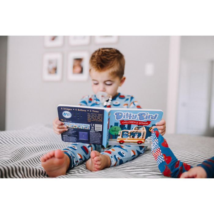 Let’s follow Ditty Bird on a musical journey and learn along with some of his favorite Children's songs. Find and press the “sound dot” on each page to start/stop six educational songs, sung by kids. Your little ones will become familiar with animals, parts of the body, and letters of the alphabet. Perfect gift for baby and toddlers 1-3.