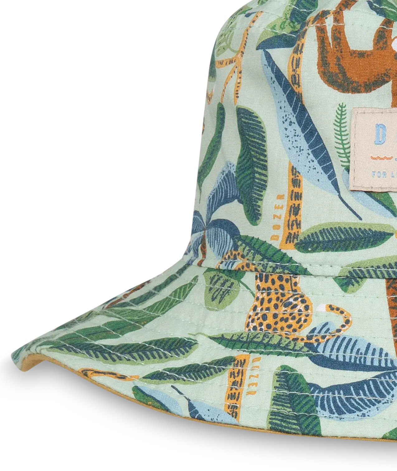 The Kamay reversible bucket hat features a playful tropical print and provides sun protection, perfect for any occasion.