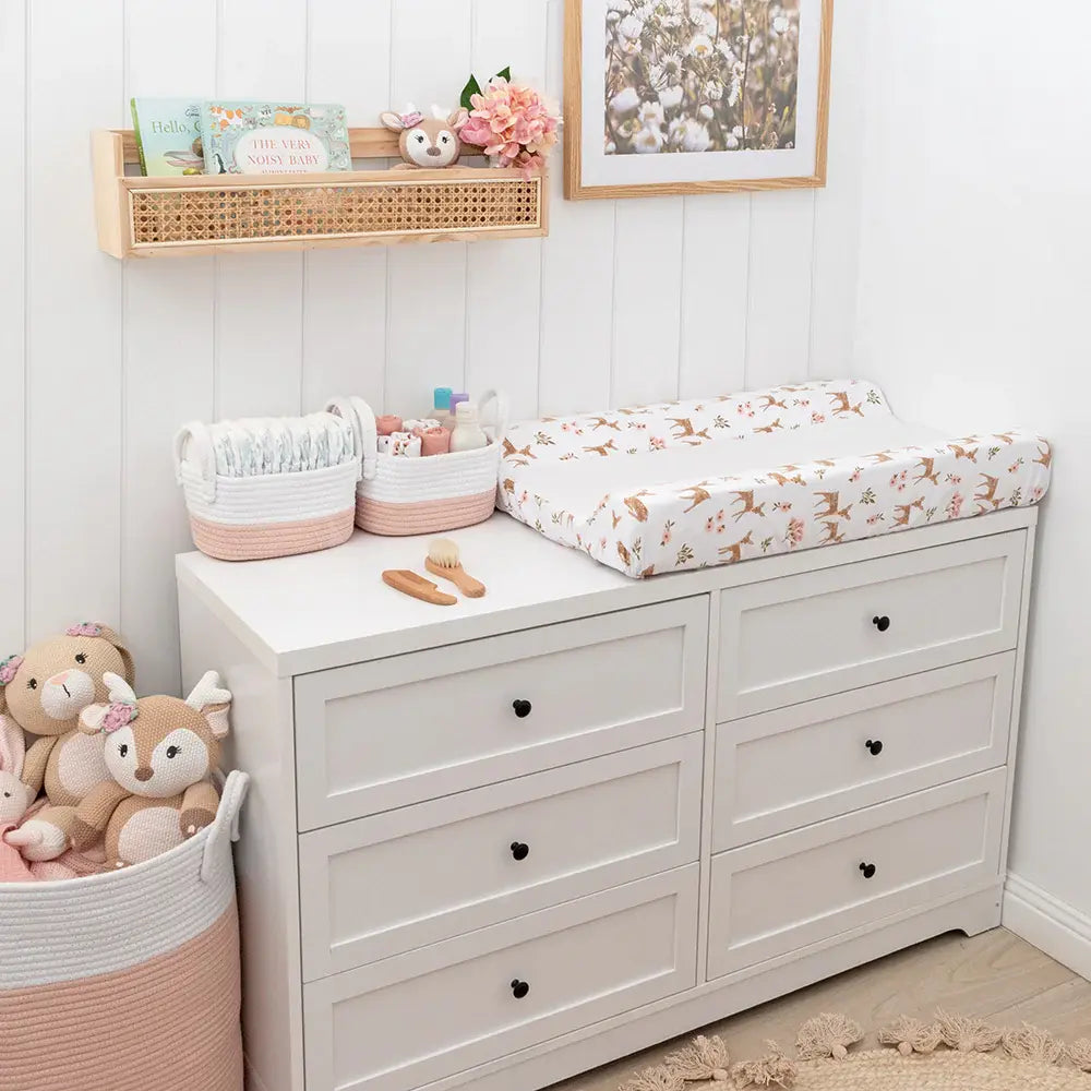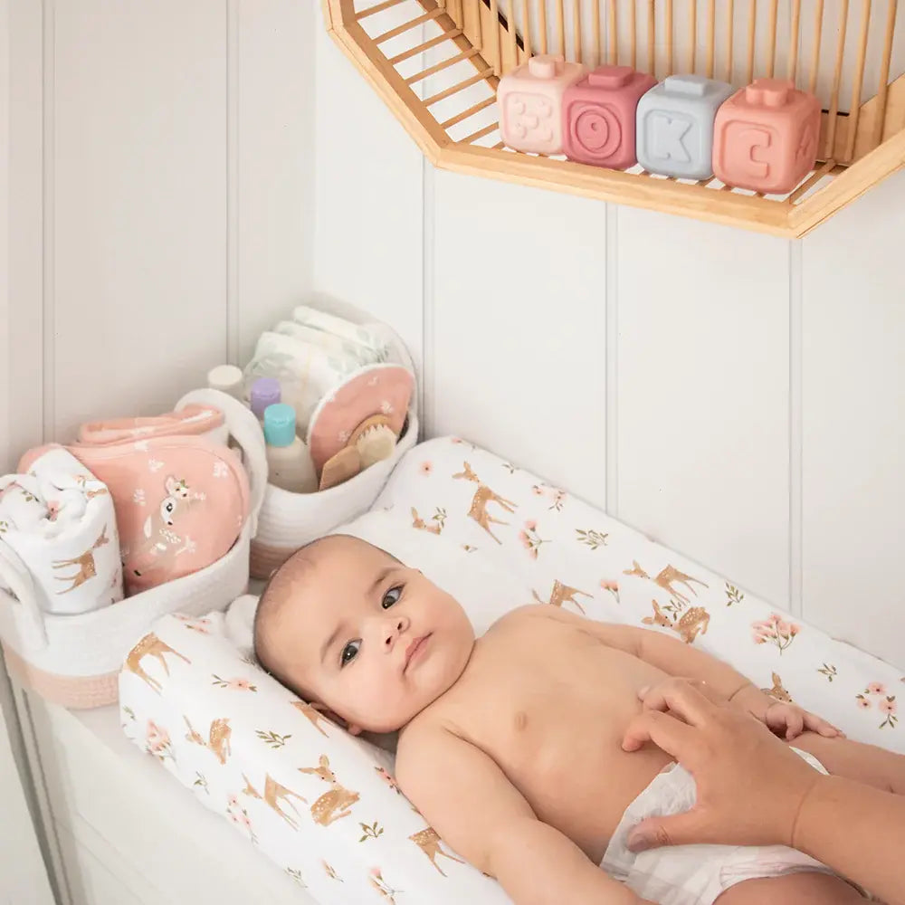 Cushion your baby during change time with our 100% cotton change pad cover with absorbent terry towelling middle. Featuring elasticated sides to provide a secure fit, it allows you to change your baby confidently. Match back with our other coordinating nursery accessories to create the nursery of your dreams!