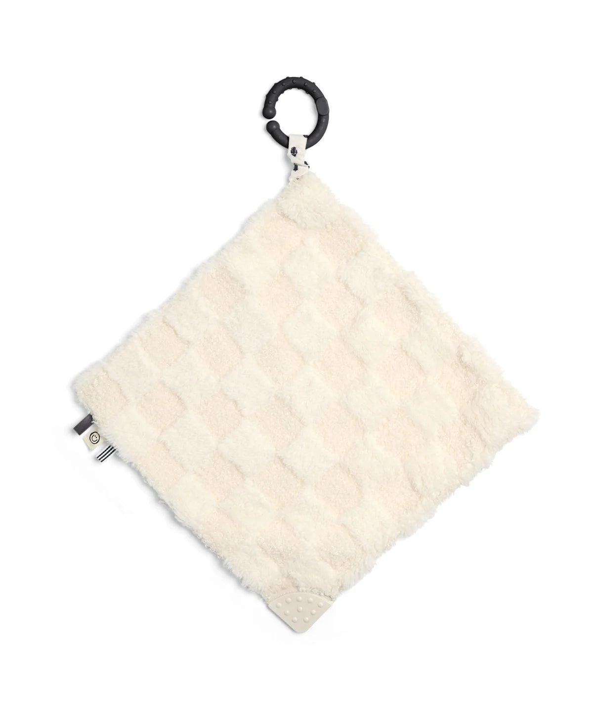 Snuggly and captivating, this bold patterned comforter in high-contrast tones helps support little ones' developing eye coordination while delivering the softest cuddles from day one. Created in collaboration with Another Fox, it keeps little eyes and paws busy with its graphic prints, cosy borg fabric and textured taggies. A soothing C-ring teether adds extra comfort and clips easily to a pushchair or carrycot for calm and convenience on the go.