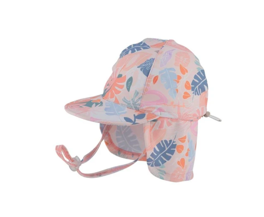 Protect your little one from the sun with this adorable baby girl's legionnaire hat by Millymook. This sweet polyester hat has ear flaps to guard against sun burn and keep your little beach bunny comfortable. The adjustable chin strap and adjustable head size will keep the hat in place, making it a practical addition to your summer gear. Sizing:
