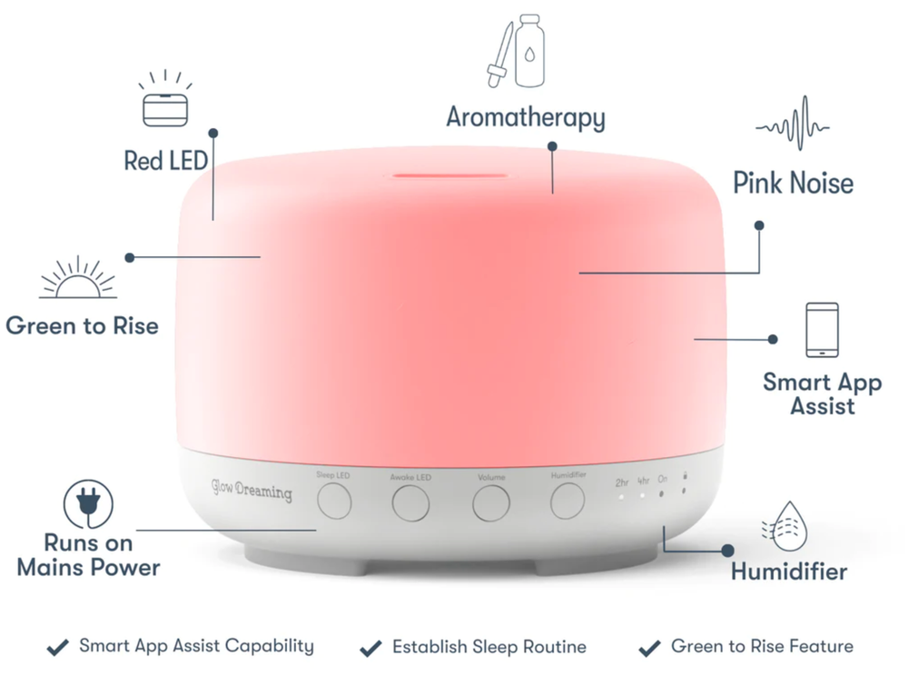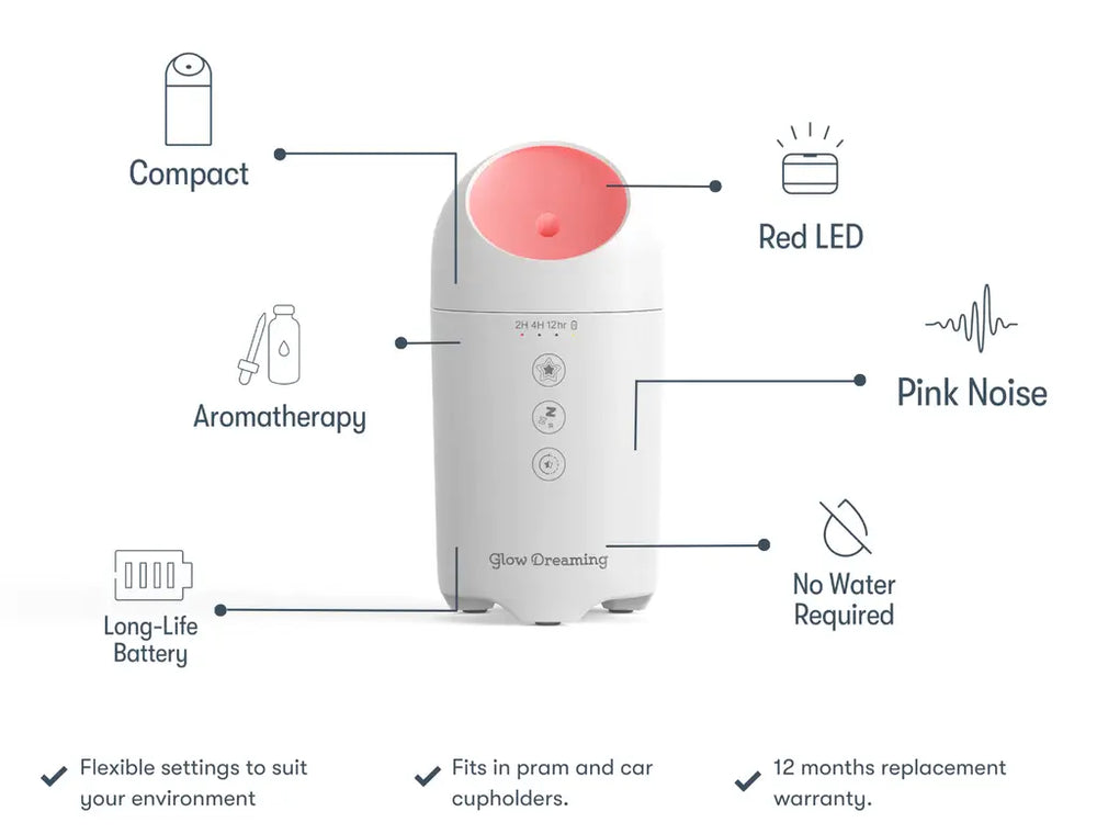 An essential oil designed to help support your child when recovering from coughs and colds by adding a few drops to your Glow Sleep Easy Humidifier can enrich your sleep routine every night, creating a relaxing atmosphere for your little one.