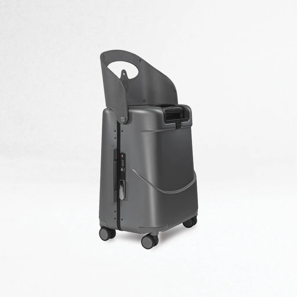Designed for multi-function travel, the MiaMily luggage bag universally configures into a ride on suitcase for children or a portable seat for adults, allowing your child to quickly and conveniently travel with you atop the travel suitcase or providing a resting place for adults when standing for long periods of time. When traveling without a child, the seat on this spinner suitcase can be used to safely store a diaper bag, travel bag or a briefcase.