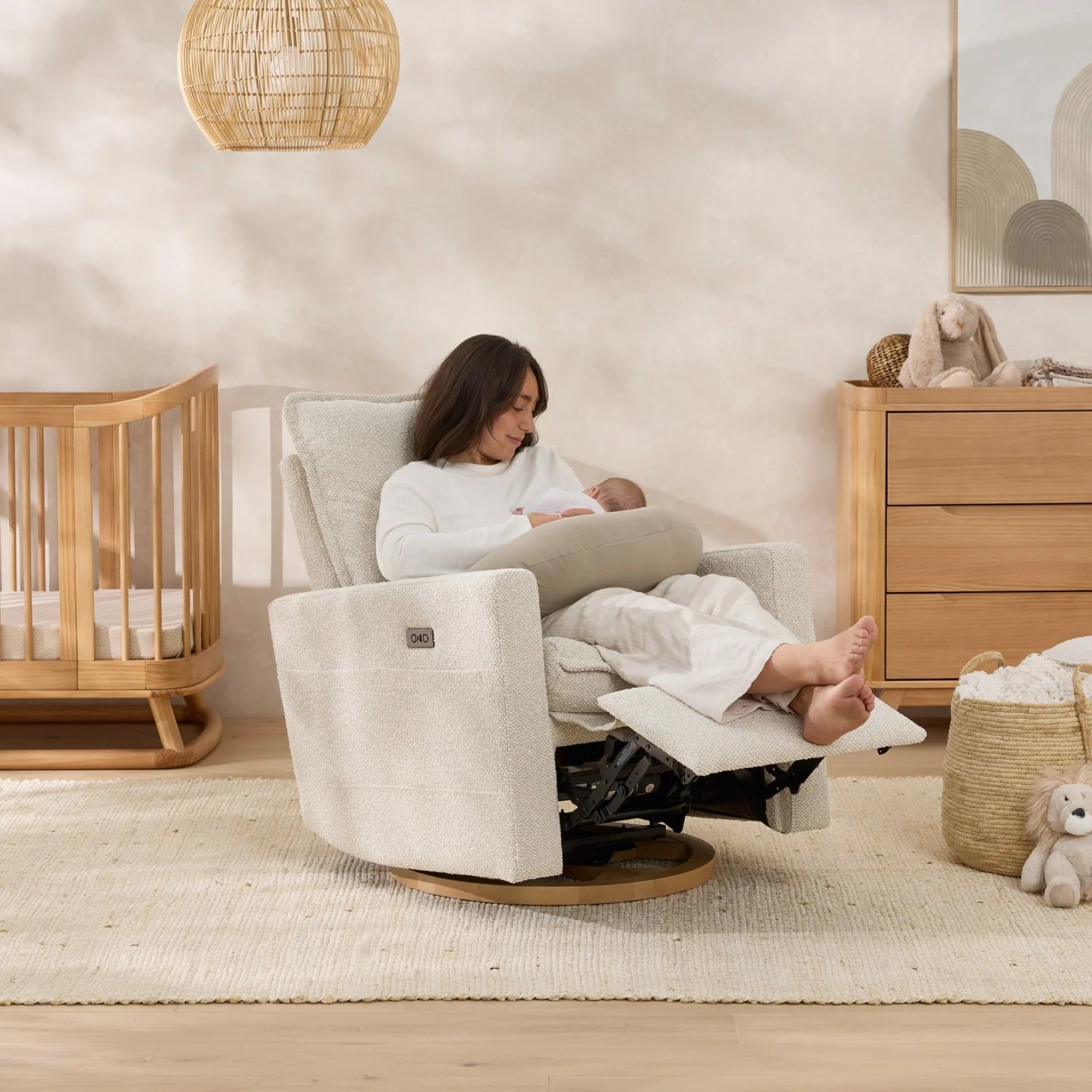 Your award-winning favourite, reimagined. The Frankie Electric Recliner & Glider now comes in a beautifully textured Soft Tweed fabric, designed to bring warm, modern refinement to your nursery while offering the comfort Frankie is loved for. Already available in our iconic Teddy-Fleece, Frankie has expanded into a new fabric innovation to suit even more interior styles. Perfect for feeding, soothing, cuddling, or simply resting, Frankie delivers unparalleled comfort, movement, and support from pregnancy through newborn days and beyond.