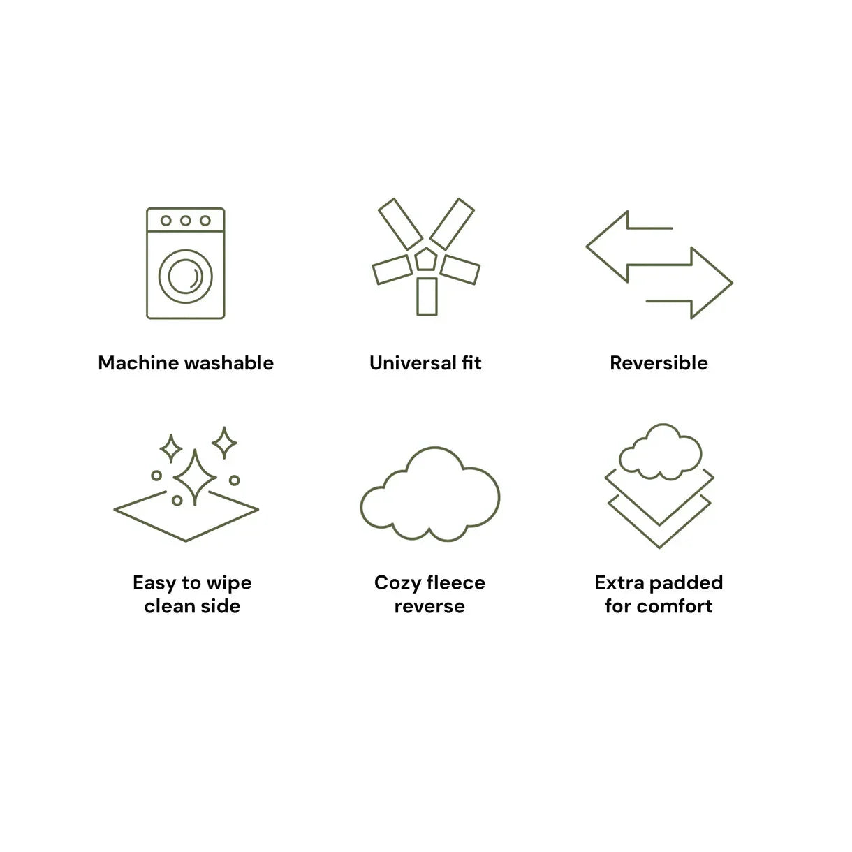 Machine washable & wipeable thanks to the water-resistant finish, clean ups have never been easier.