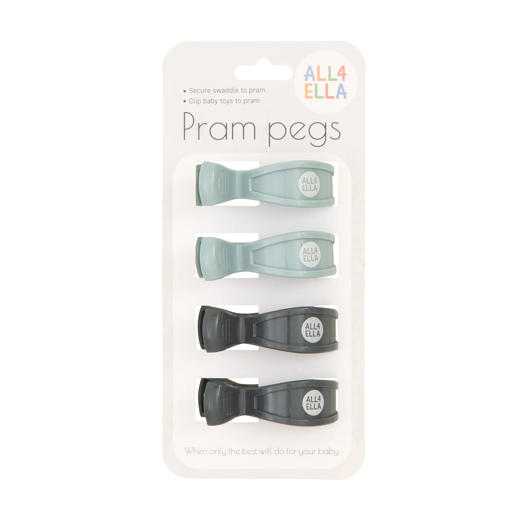 Our Pram Pegs 4pk in Blue/Charcoal are the perfect accessory for securing muslin swaddles to your pram, ensuring your baby stays shaded and comfortable during outdoor adventures.