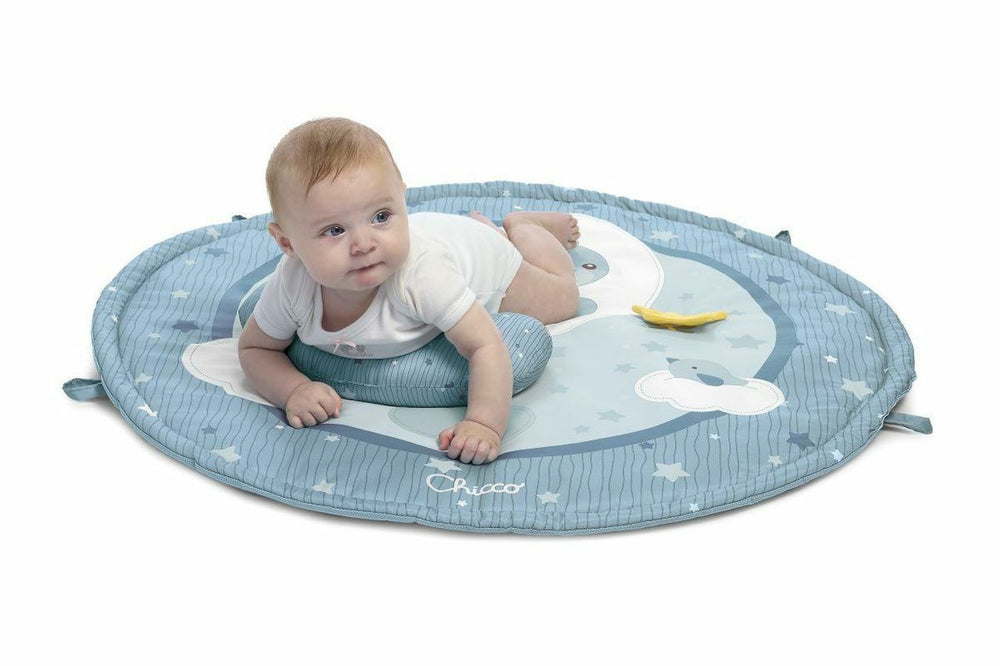 - Soft 83cm round shaped mat with pillow, perfect for Tummy Time (Day);