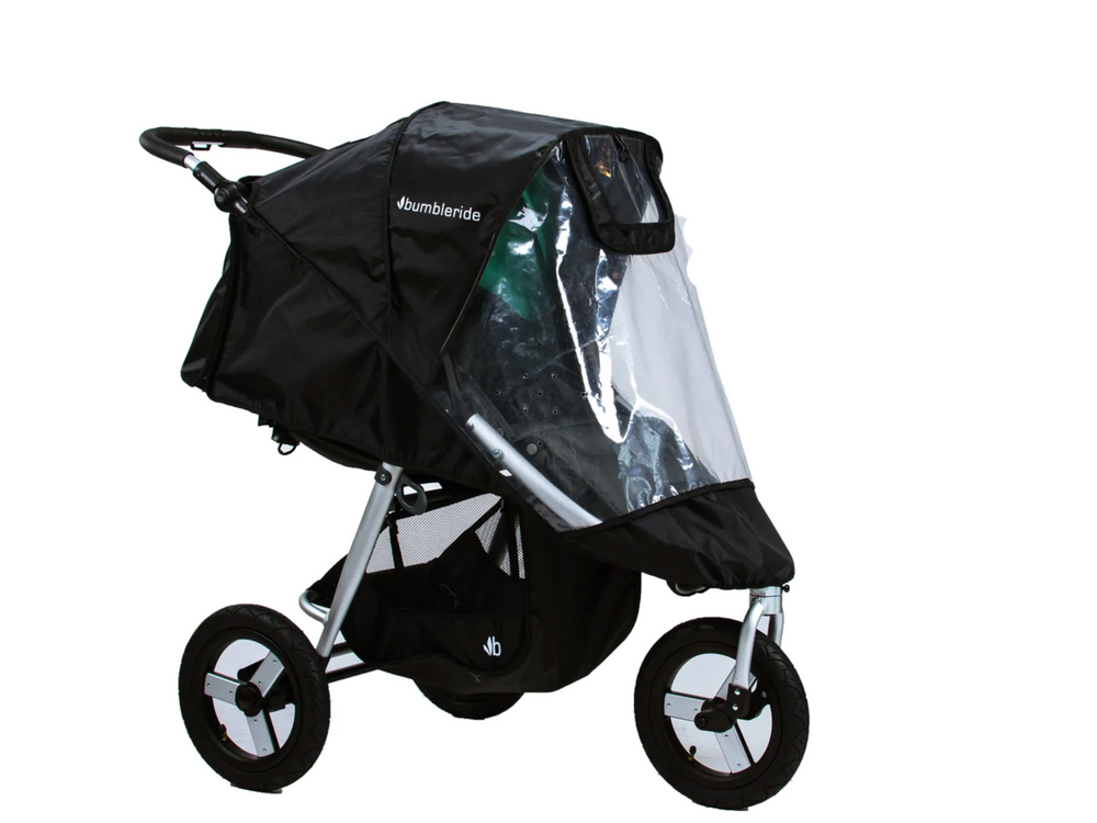 The optional Bumbleride rain cover is constructed out of a ventilated, non-PVC polymer.