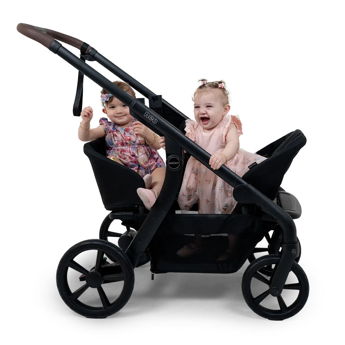 One or two, no problem! The NEO Stroller can easily accommodate two wagon seats for a safe and smooth ride.