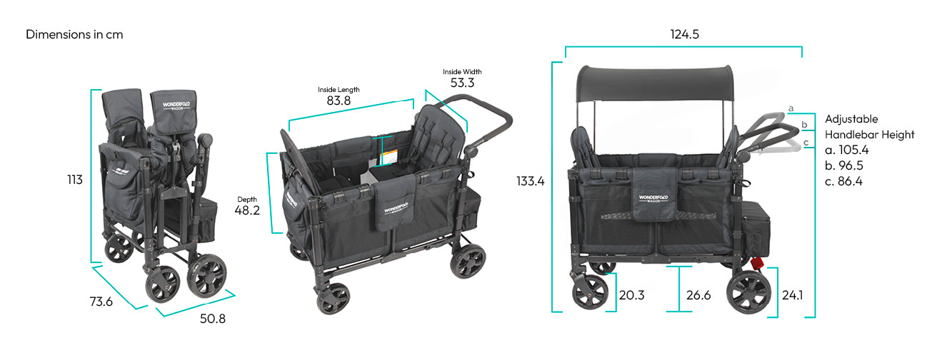 The Wonderfold W4 Elite Grey Quad Wagon seats up to 4 children, folds easily and has all terrain wheels, making your big day out a much easier adventure.