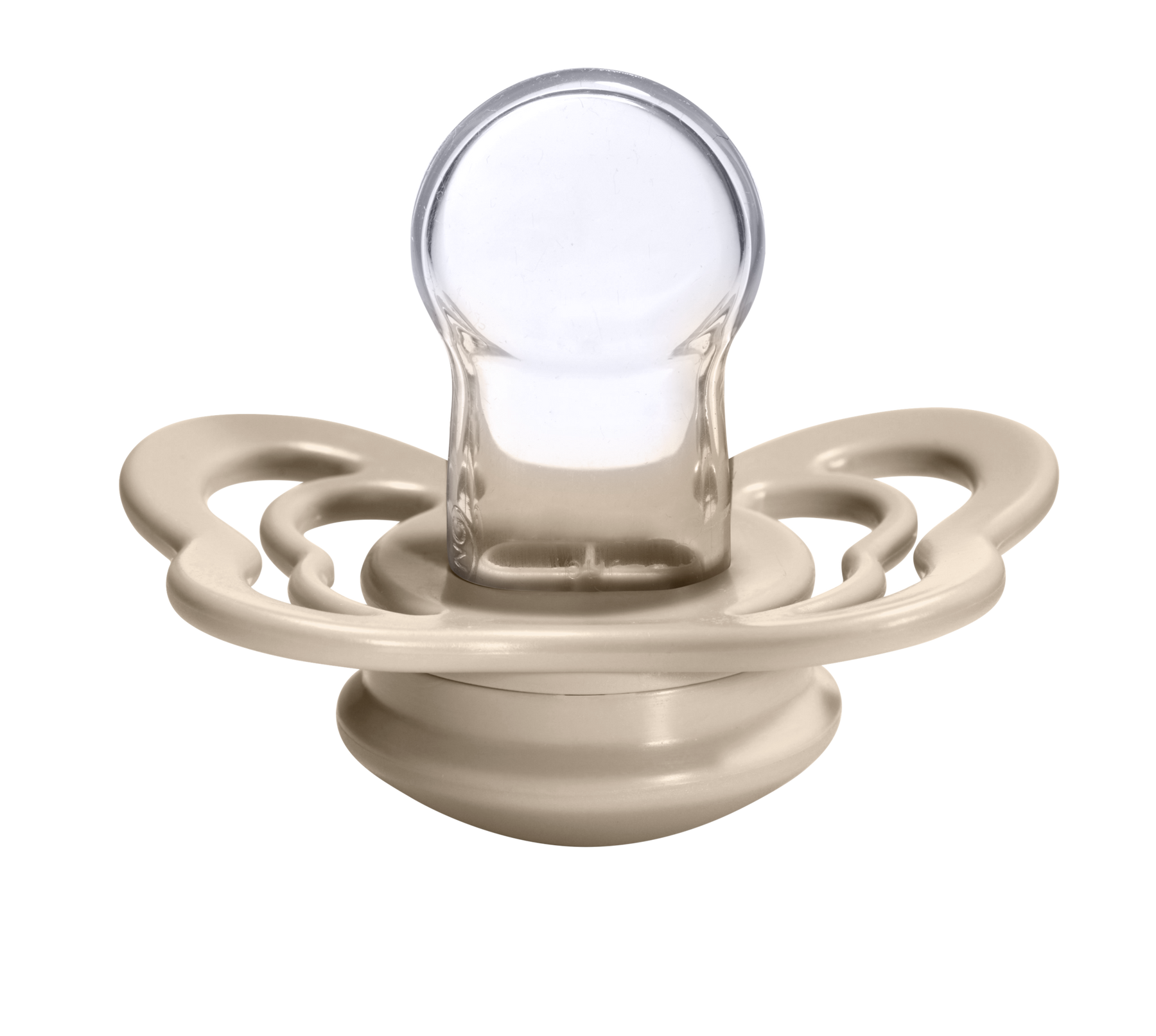 BIBS Couture is the newest pacifier in the BIBS family. It completes the modern pacifier assortment with an anatomically shaped nipple of highest quality in a premium design. The anatomically shaped nipple imitates the mother's nipple while breastfeeding and fits the roof of baby’s mouth perfectly.