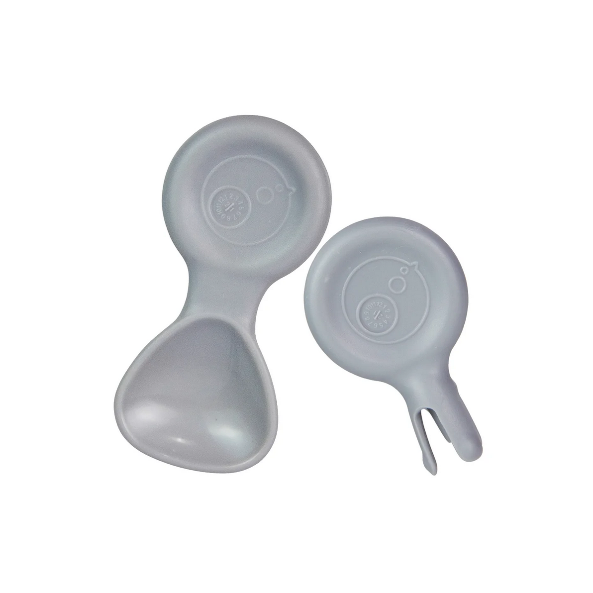 Our mini flork™ cutlery lets kids pick up fruit, veggies and meat safely and hygienically. Unique rounded prongs lets kids pierce food and eat safely, even with little gums. Our mini spoon rounded head spoons wet and dry foods smoothly for a delicious, mess-free mouthful.