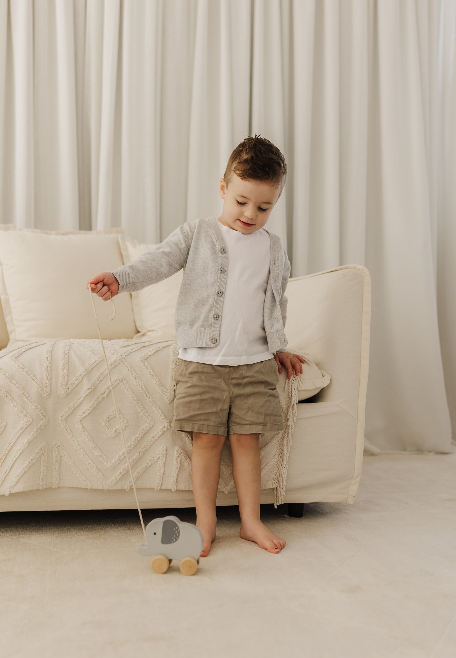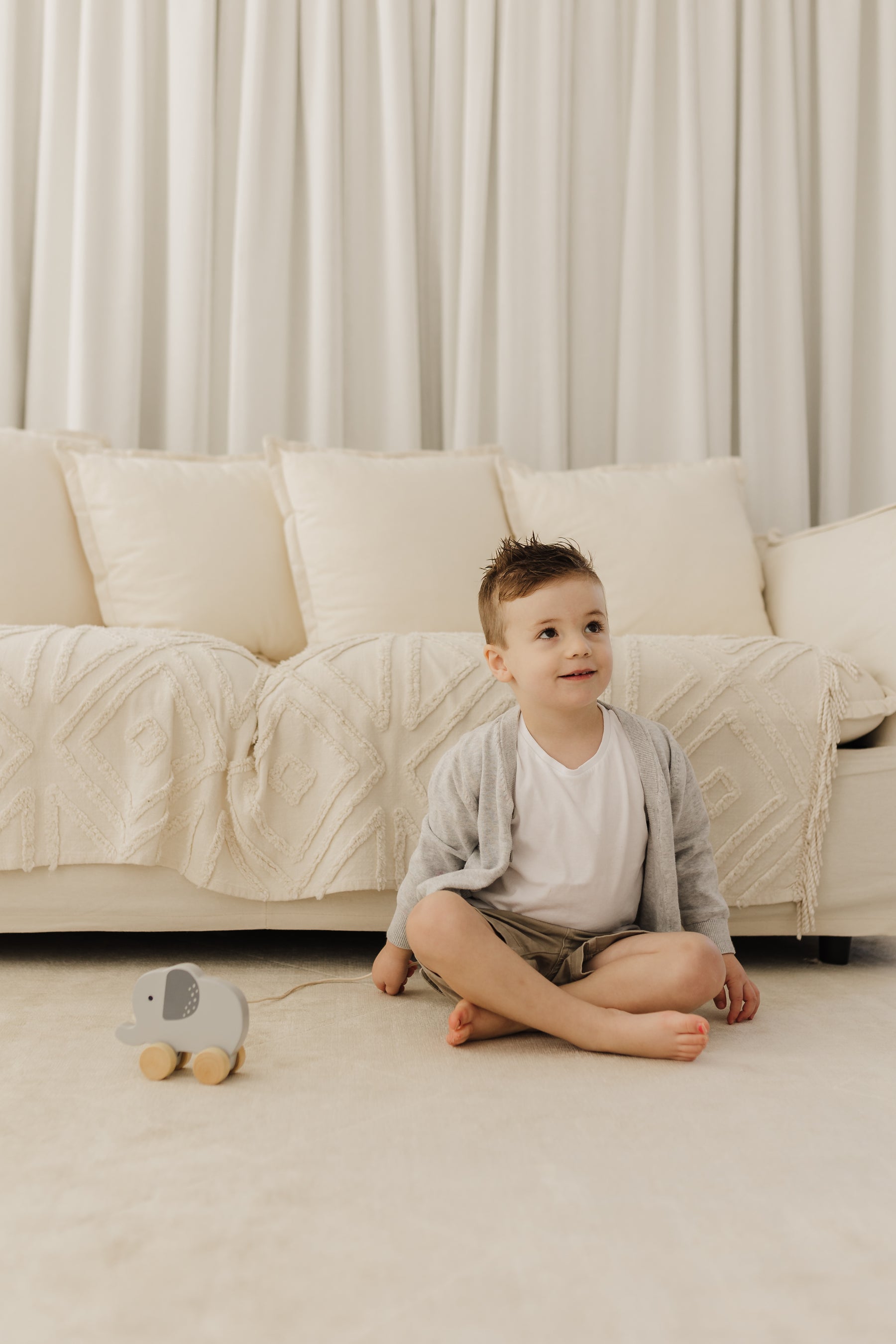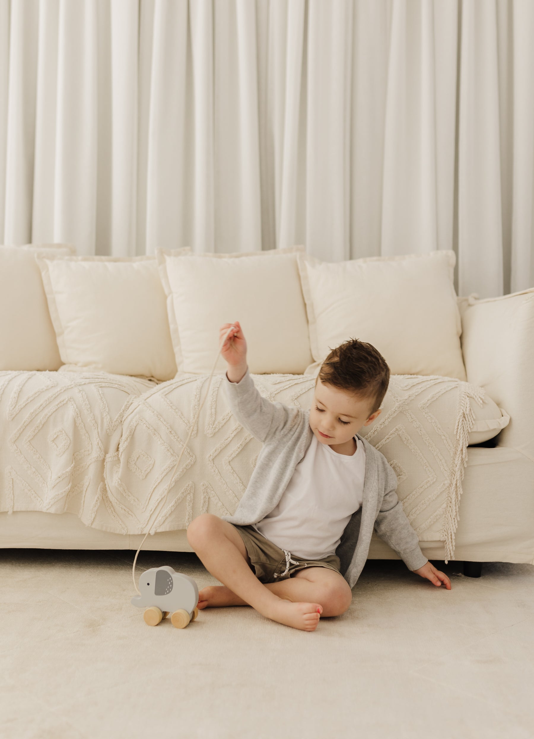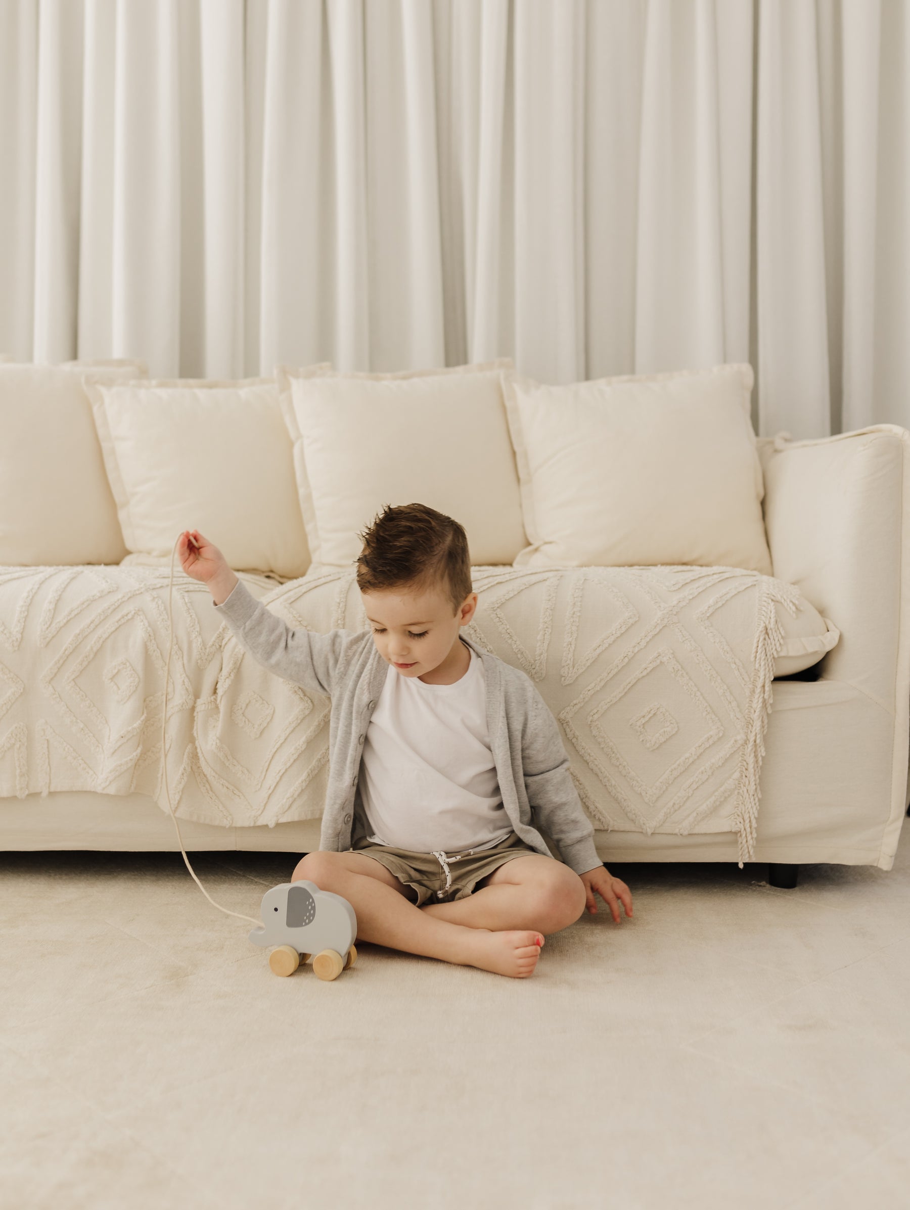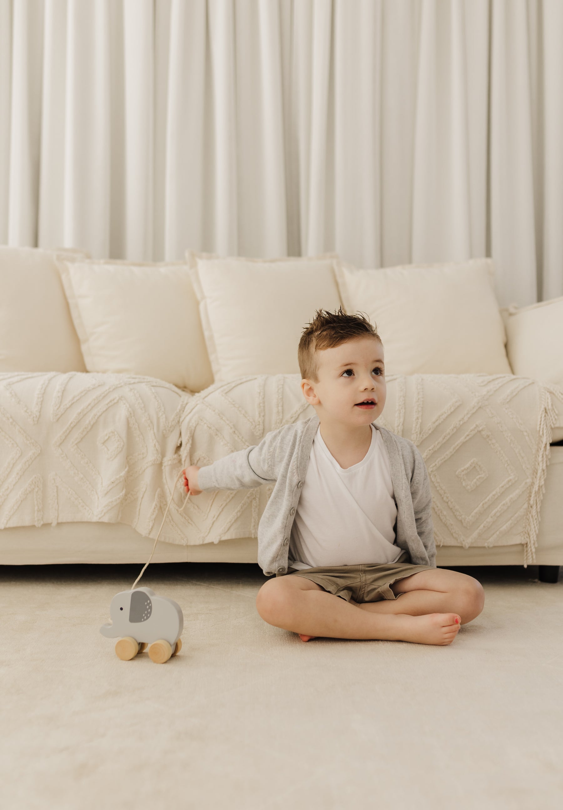 Introducing the adorable Bubble Elephant Wooden Pull Along Toy - a charming grey, pull-along toy embodying timeless simplicity. This timeless treasure is designed to capture the hearts of both children and parents alike