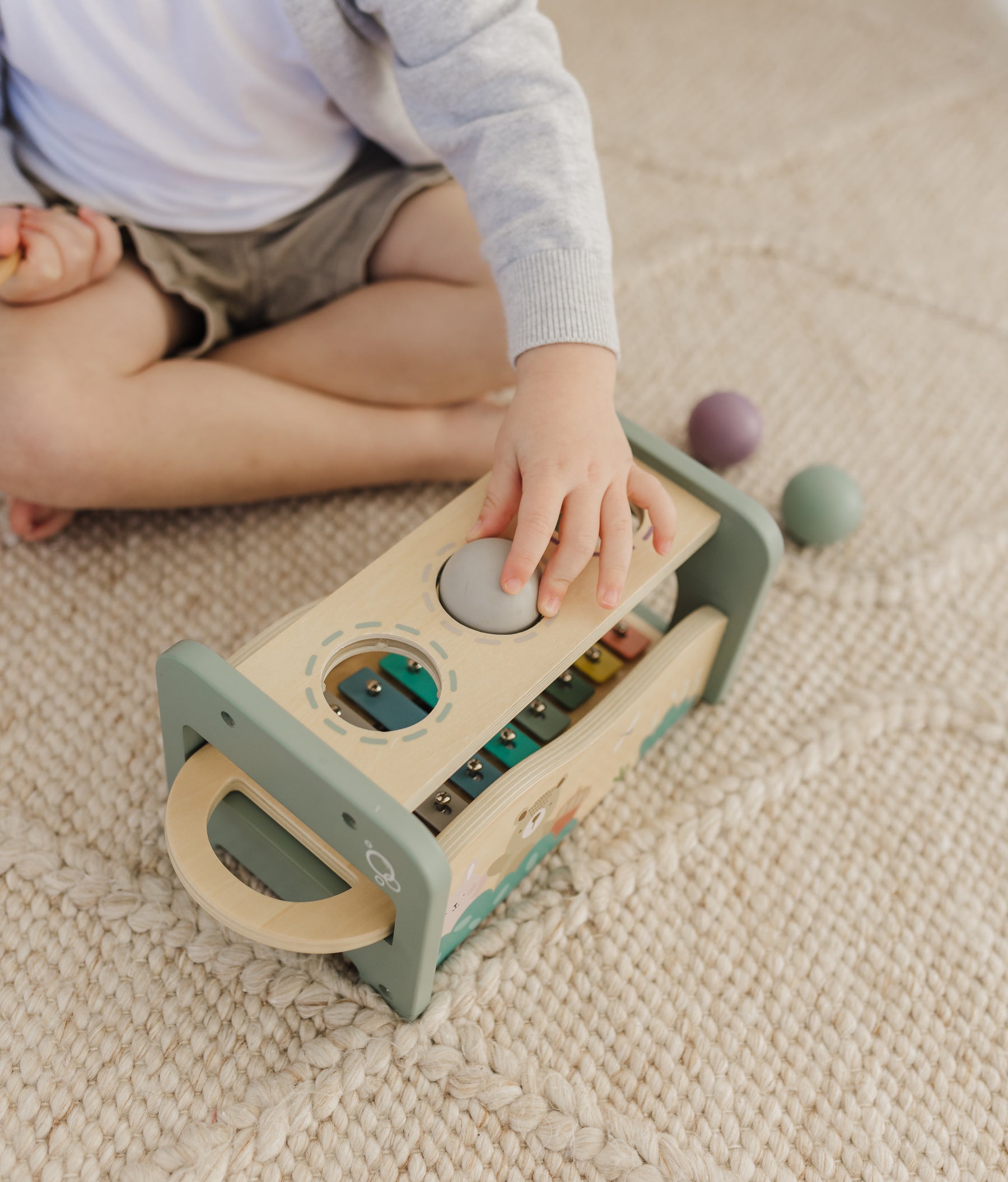 - Fine Motor Skills – Encourages hand-eye coordination and grip strength as little ones tap the balls and play the xylophone
