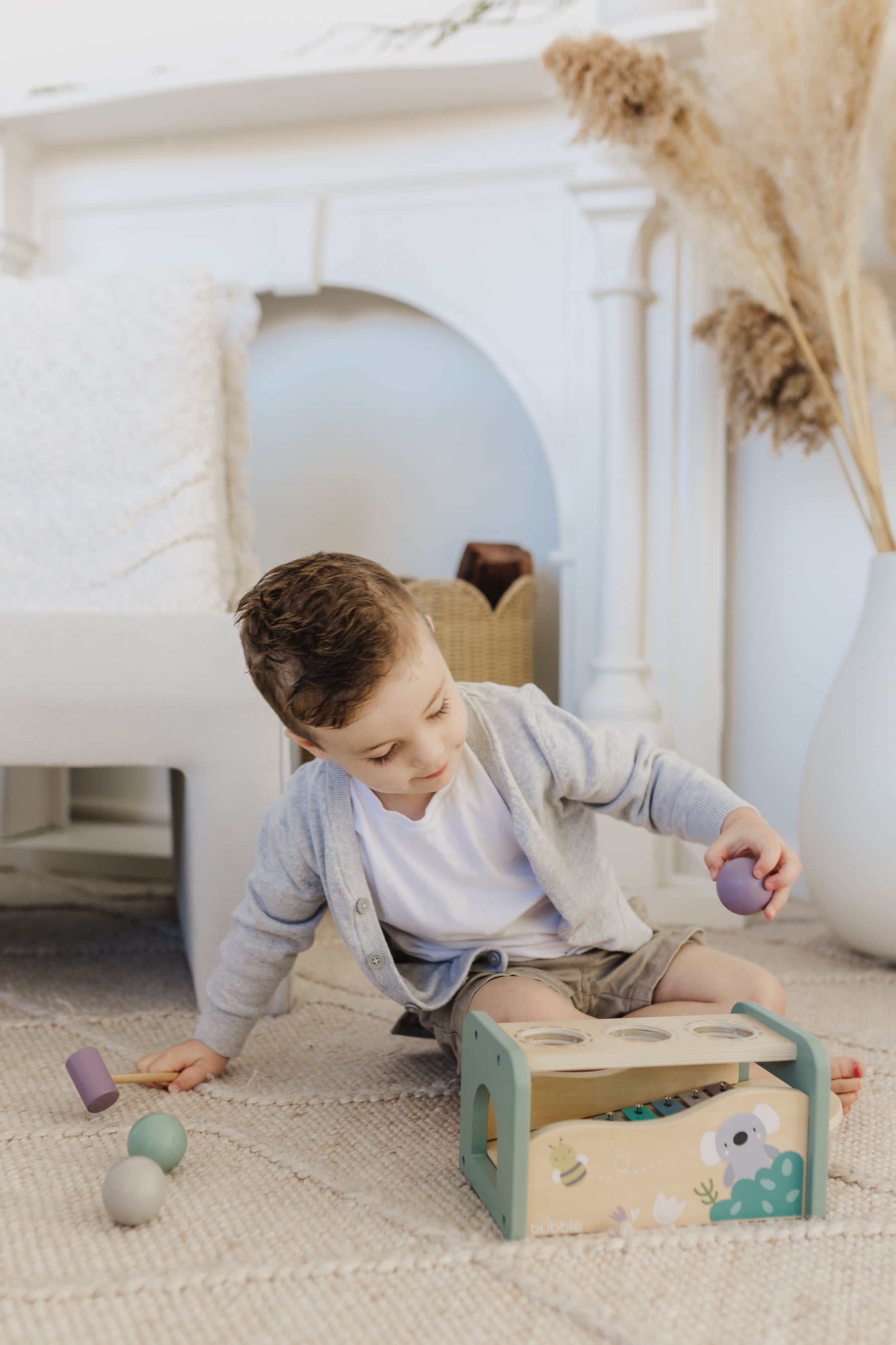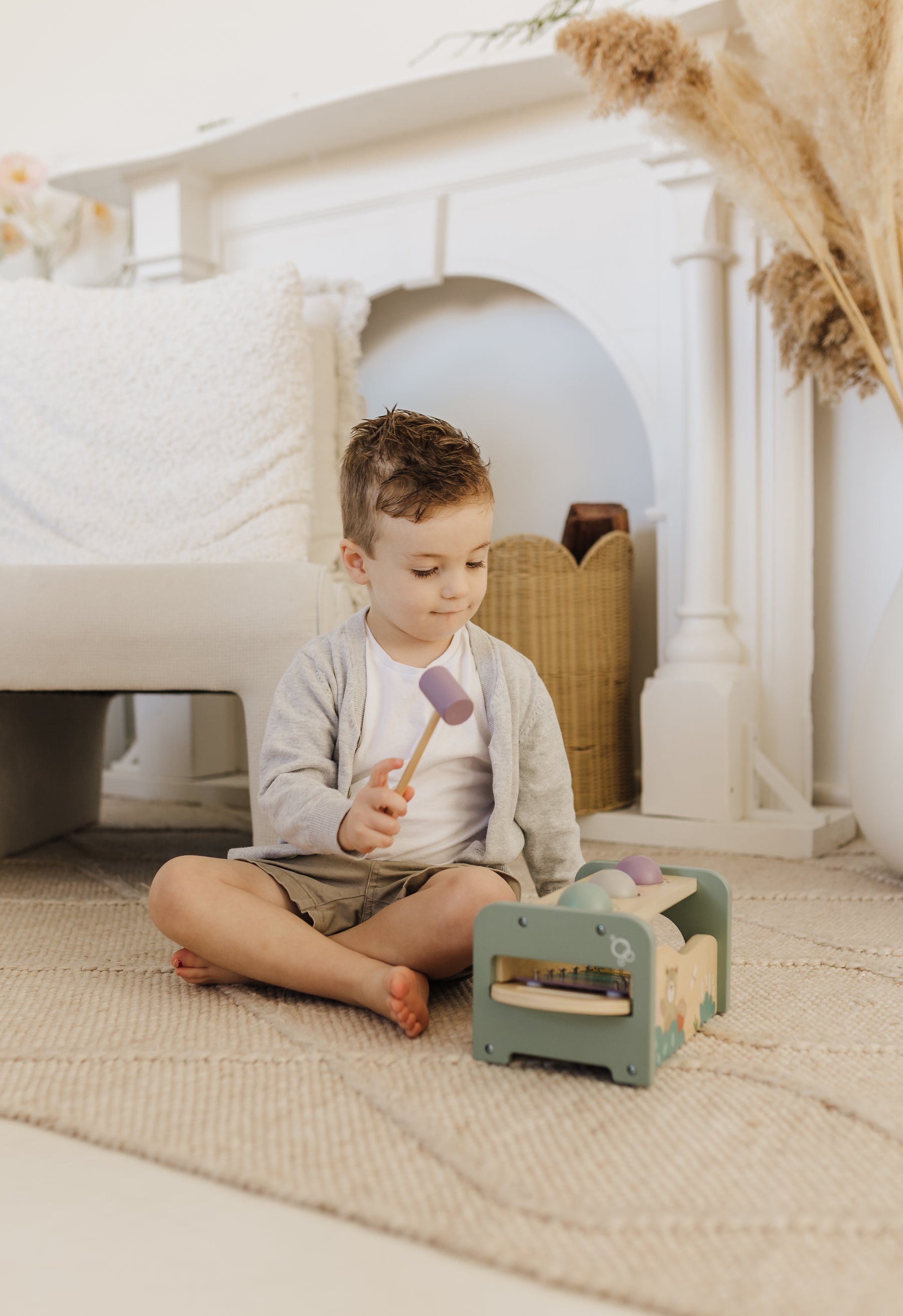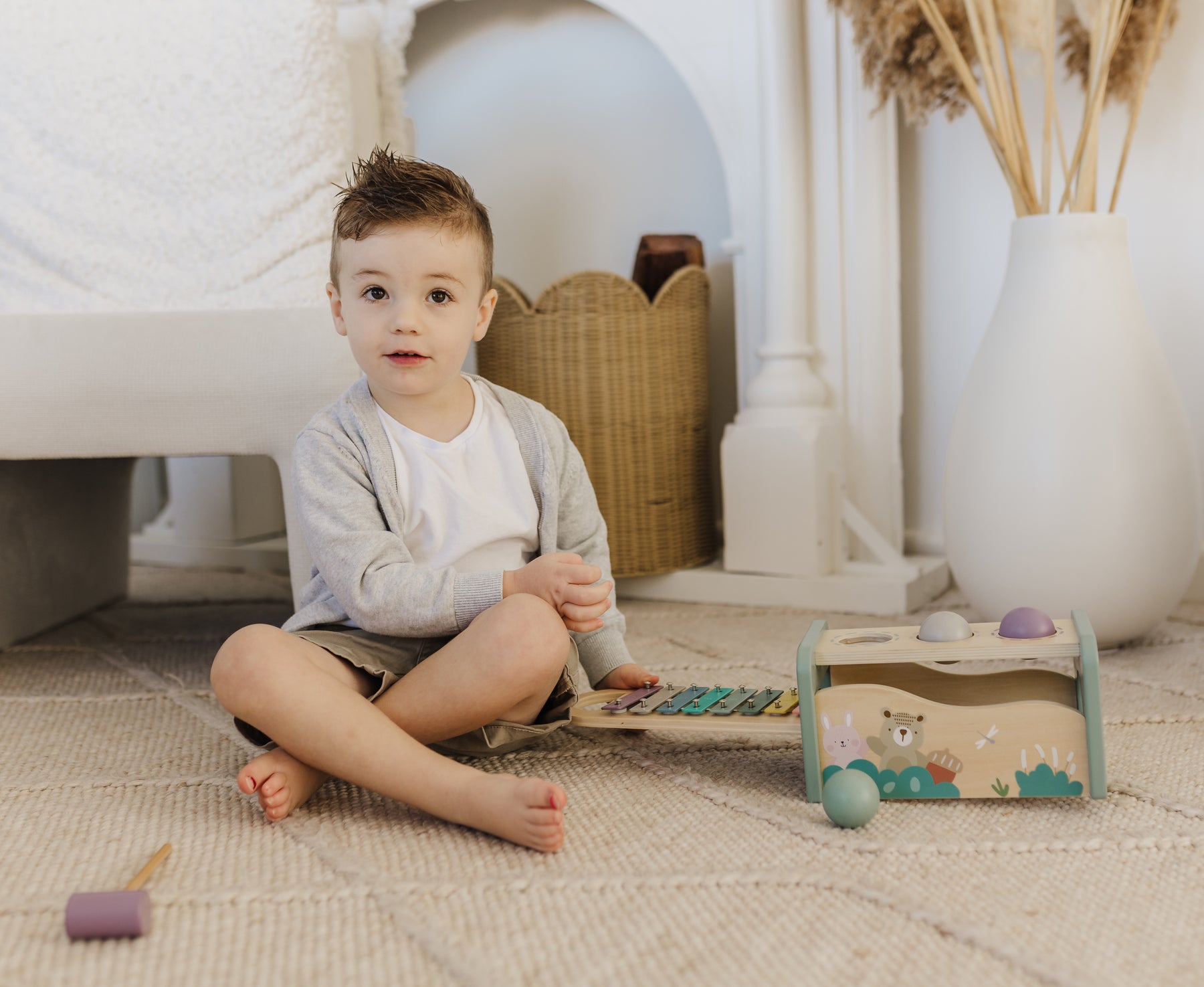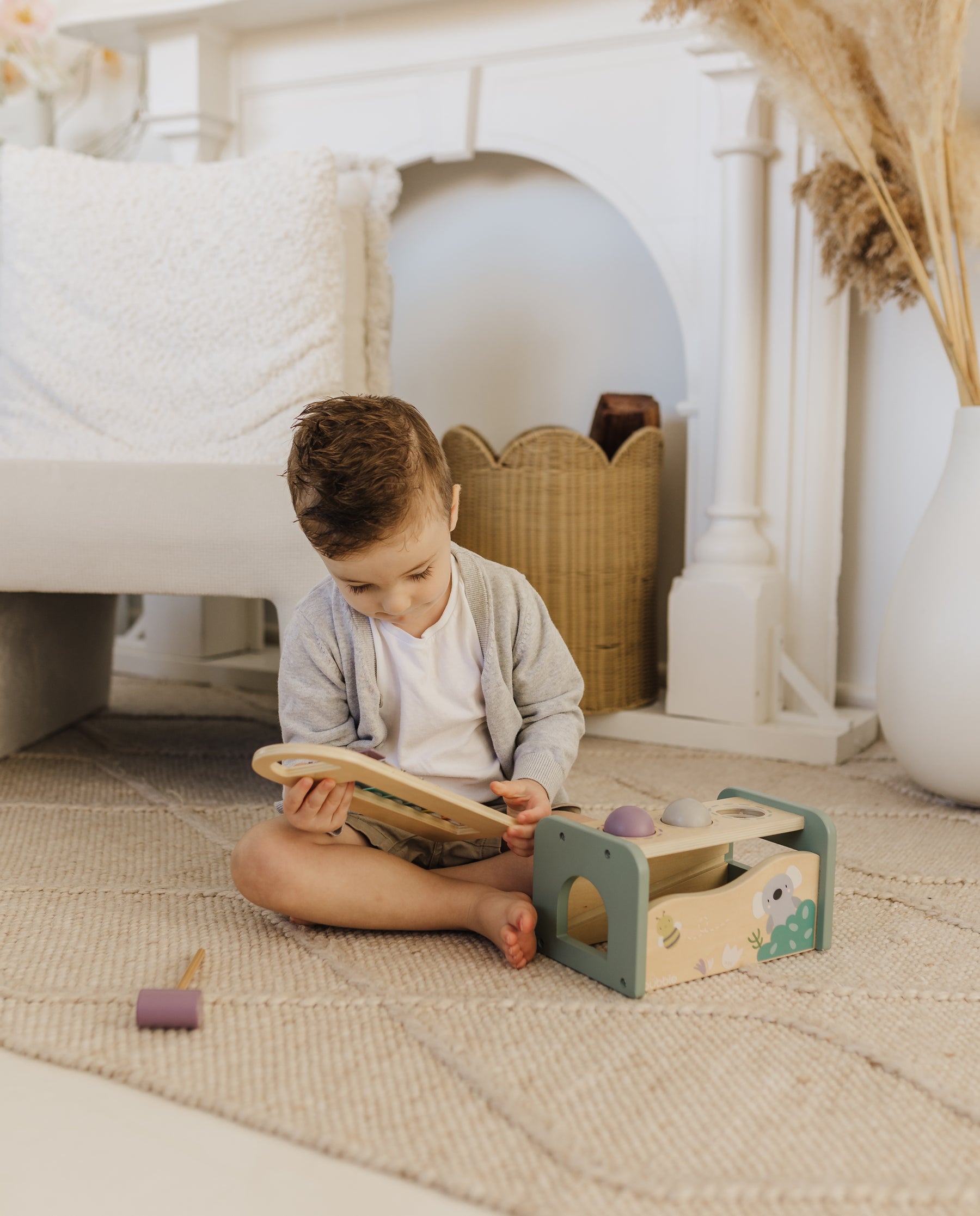 Bursting with colour and creativity, Bubble's Tap Tap Xylophone is a joyful blend of music and movement. Little ones will love tapping the wooden balls through the holes and watching them roll over the xylophone, creating cheerful notes as they go. With friendly animal illustrations and soft pastel tones, it’s as beautiful as it is engaging