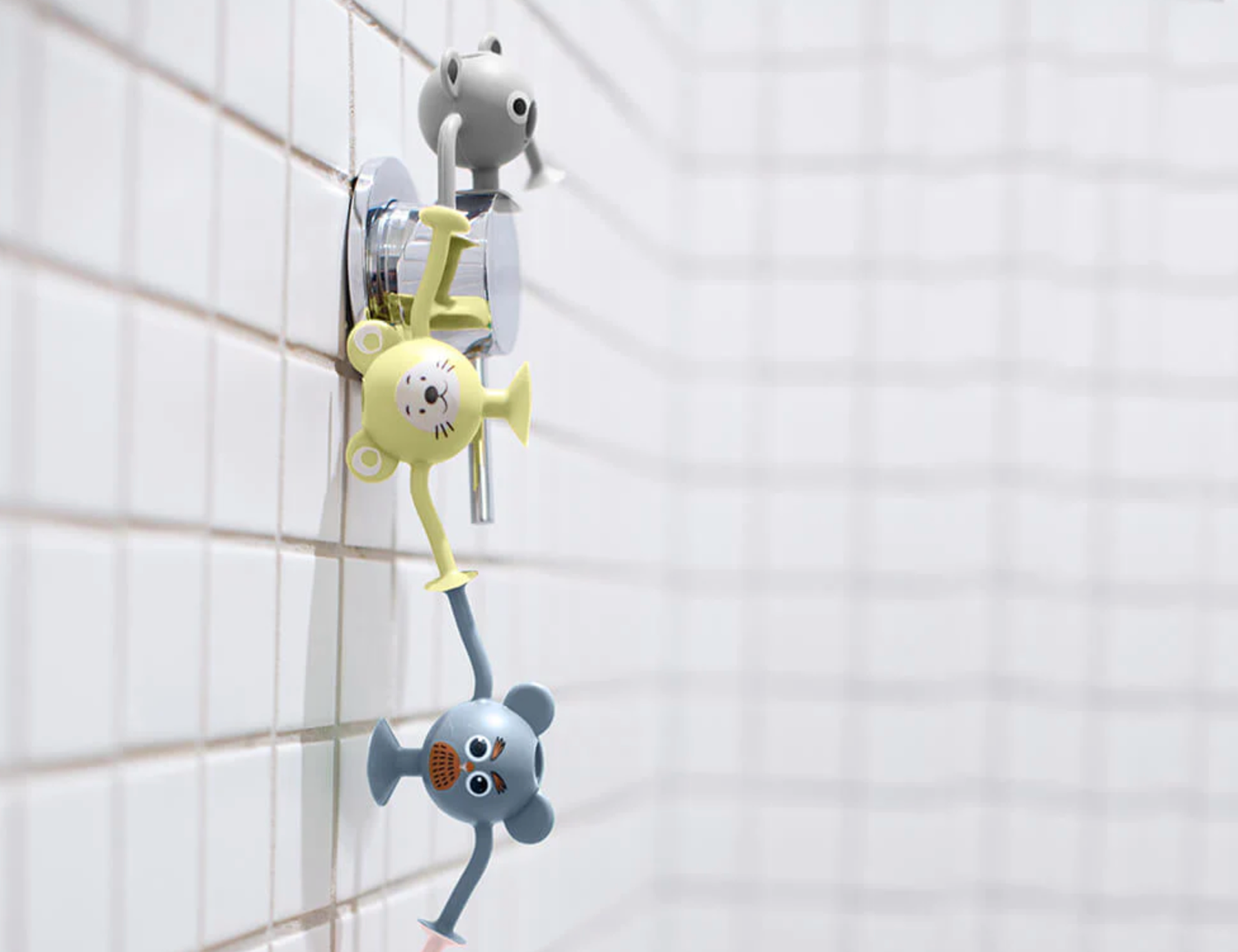 These zany silicone suction kids bath toys are a great team. Connect their hands and feet via the suckers so they can work together to climb walls, hang off crevasses, navigate bath tops, squeeze and squirt and so much more.