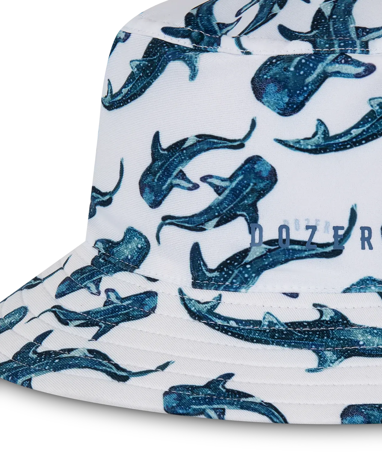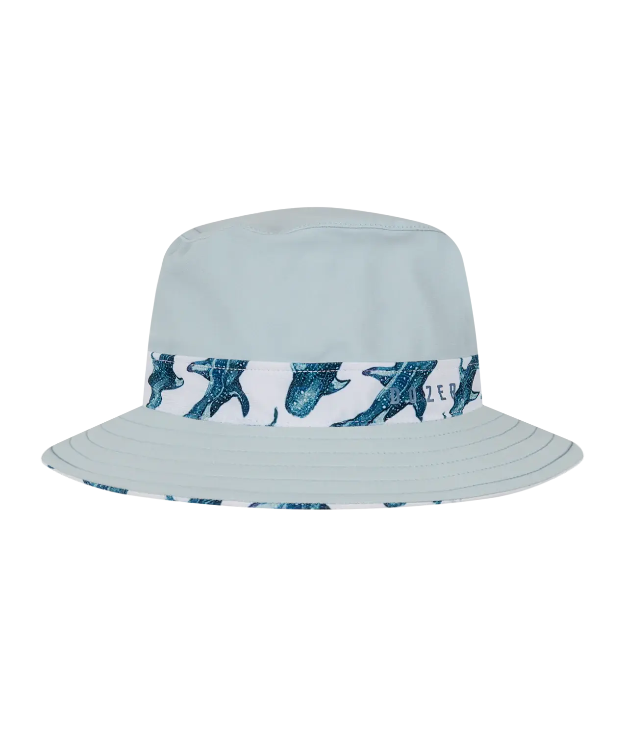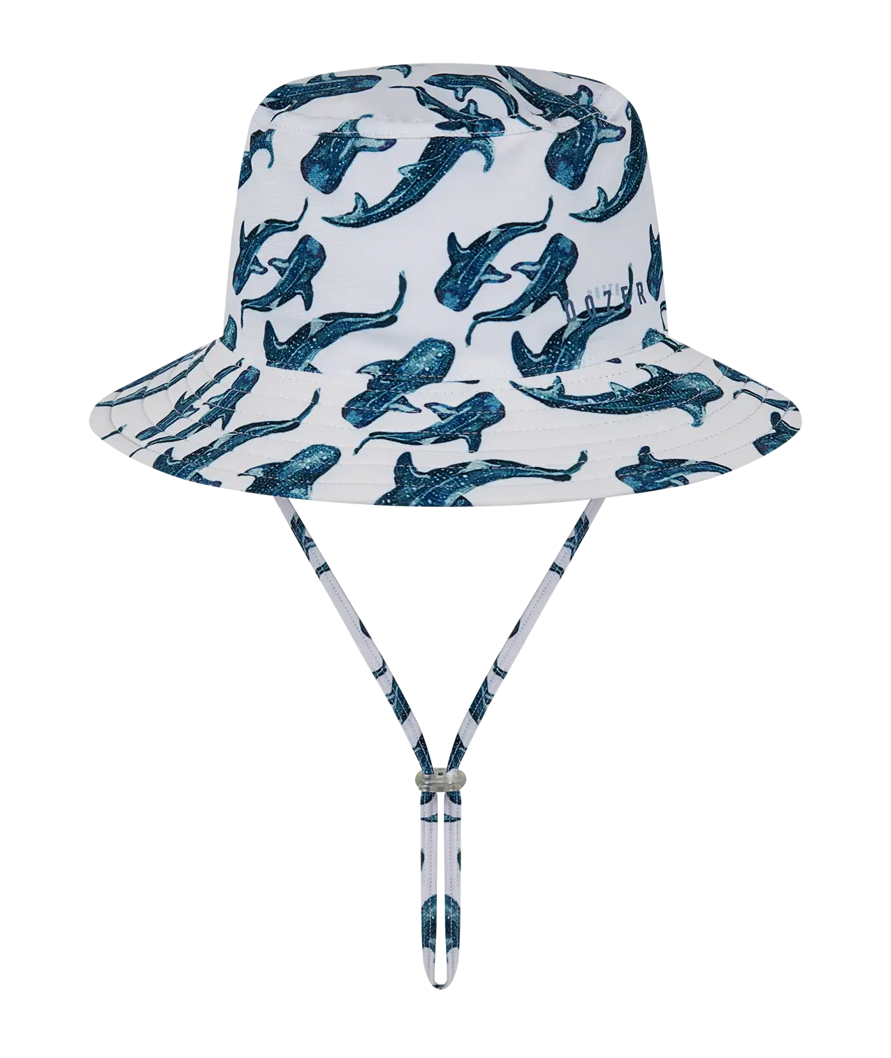 The boys Jervis summer bucket features a reversible design, classic fit and a detachable drawcord. This hat features a whale shark yardage print on one side and a plain fabric on the other side.
